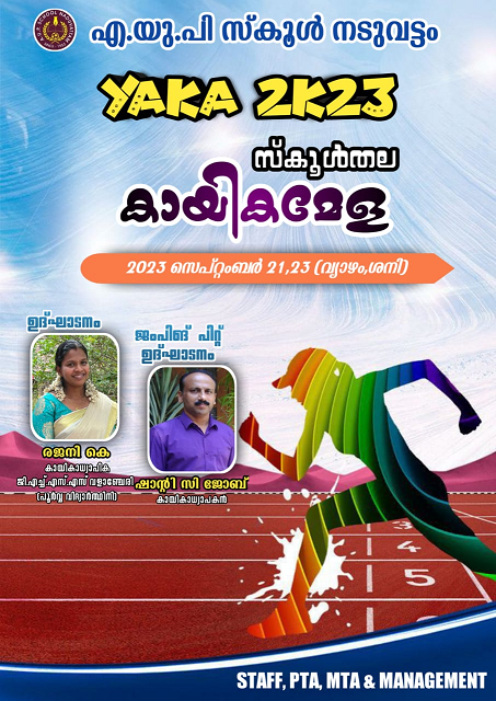 സ്കൂൾ തല കായികമേള September 14, 2023September 14, 2023 admin AUPS, നടുവട്ടം, 2023 സെപ്തംബര് 21, 23 (വ്യാഴം, ശനി )